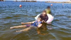 浮き輪を使って泳いだり、ライフジャケットを活用して泳いだり、
