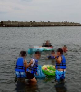 浮き輪でのんびり海に浮かんだり、お友達同士で水をかけ合ったりと思い思いに楽しみます♪