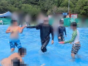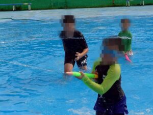 水鉄砲で戦いごっこをしたり、すべり台ですべったり、ゆう先生に襲いかかったり…(笑)