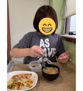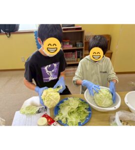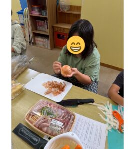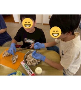 調理方法を職員に教えてもらいながら進めて行き、徐々に慣れて来たため手際も良くなり・・・👍️