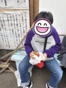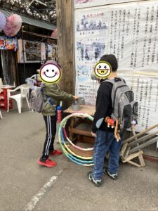 少し中道に入ったところにある出世前広場には昔のおもちゃがあり、竹馬に挑戦しましたが!難し~!と苦戦する子供たちでした😅笑